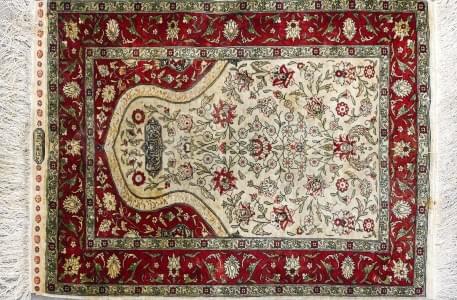 Soie et fil d'or à décor d'un mirhab stylisé, 90x58 cm