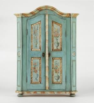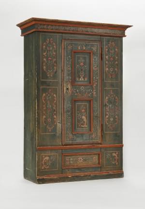 Bois peint polychrome à décor de vases, datée 1837, 192x130x45 c...