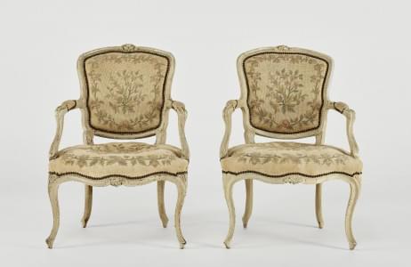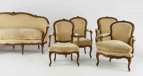 653. Salon d'époque Louis XV comprenant: une paire de bergères, six f...