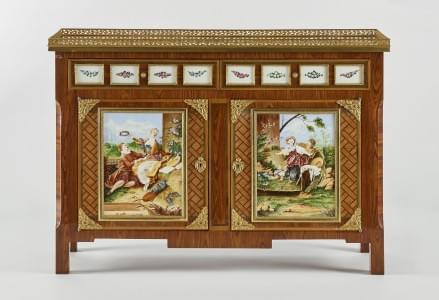 Deux vantaux ornés de plaques de porcelaine à décor peint d'aprè...