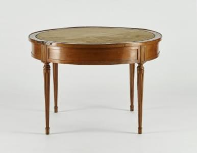 662. Table demi-lune transformée en guéridon de style Louis XVI