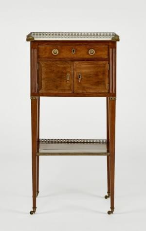 Un tiroir, deux vantaux, une tablette d'entretoise, acajou, bron...
