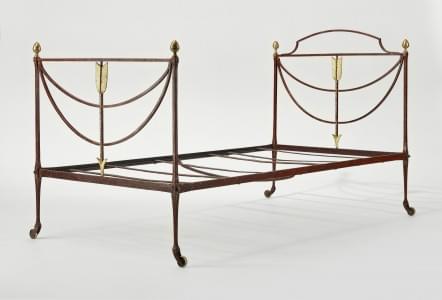 Bois de rose, bronze doré et cuir doré aux petits fers, 74x124x6...