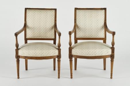 Ceinture ajourée de cercles feuillagés, pieds fuselés, bois au n...