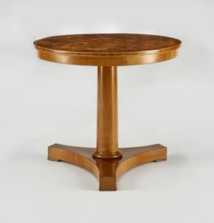 Plateau marqueté à motif rayonnant, bois fruitier, 73x81 cm