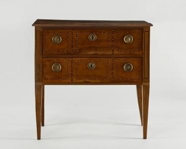 Deux tiroirs, bois fruitier marqueté en filets, 88x89x48 cm
