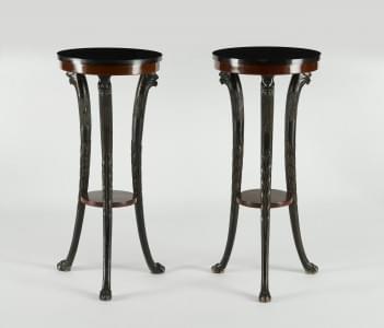 Bois noirci, acajou et marbre noir, montants à décor de têtes d'...