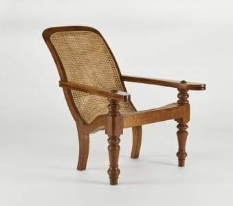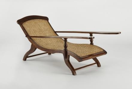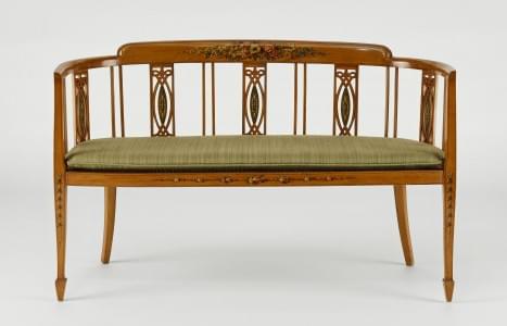 Bois satiné à décor peint de motifs floraux, assise cannée