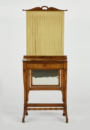 Porte-manteau, hêtre vernissé, aluminium, miroir et velours côte...