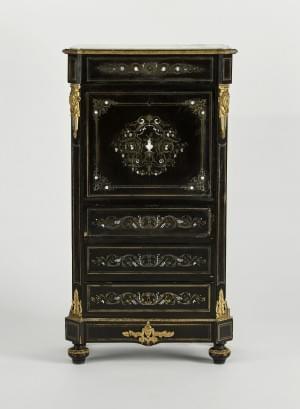 Bois noirci, marqueterie d'ivoire, laiton et nacre, 134x70x38 cm