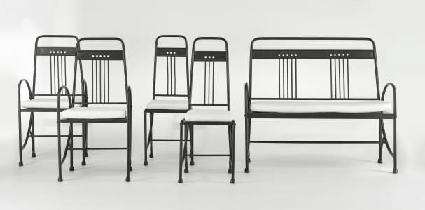 Mobilier de jardin comprenant: une paire de chaises, une paire d...