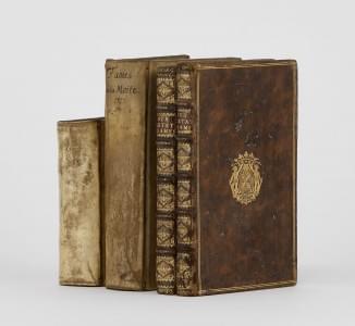 In 12, veau brun, dos à nerfs ornés, armes frappées au centre de...