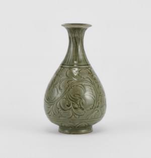 Porcelaine céladon à décor floral stylisé en léger relief, H 19...