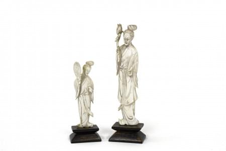 Ivoire et palissandre sculpté, signé, H 12 cm