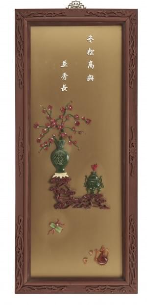 868. Suite de quatre panneaux de pierre dure sur bois, Chine, XXe s