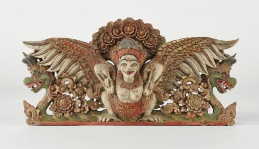 Bois sculpté et polychrome à décor d'une divinité, 95x48 cm