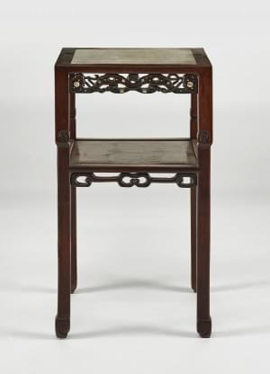 Bois naturel ajouré et nacre, marbre, 80x44x44 cm