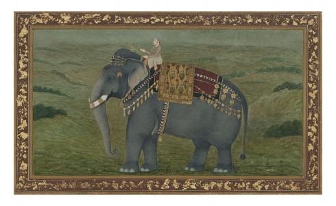 Scène de cour et scène de chasse à l'éléphant, gouache, encre et...