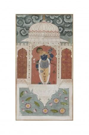 Scène avec Krishna, pigments sur papier, 27x19 cm