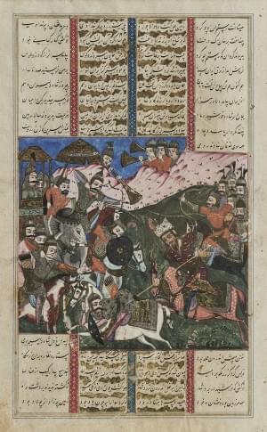 902. Deux pages de livre illustrées de miniatures, Iran, époque Qajar...