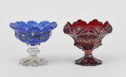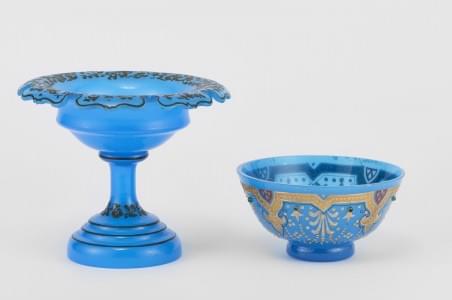 Verre, overlay bleu et rubis, émaux polychromes et or, D 28 et 1...