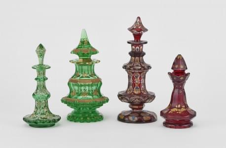 918. Quatre flacons, Bohème, XIXe s pour le marché Qajar