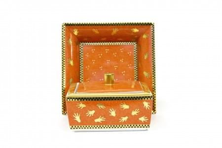 Porcelaine orange à décor de mains dorées, 18x18 et 14x14 cm