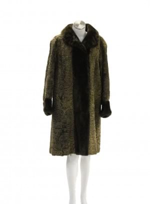 Fourrure d'astrakan doublé de fourrure, intérieur en soie marron...