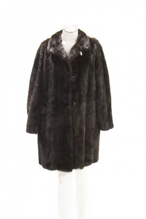 Vison brun, intérieur en tissu brun, fermeture à boutons, poches...
