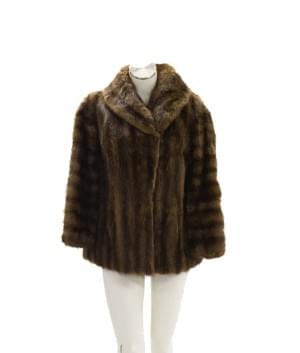 Fourrure de vison brun, intérieur en tissu rayé brun, fermeture...
