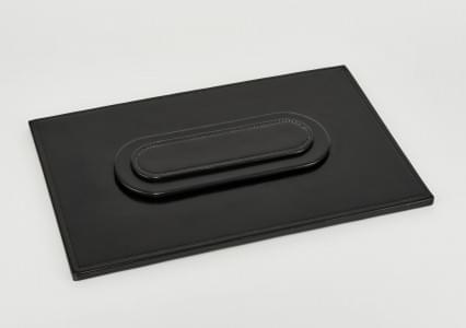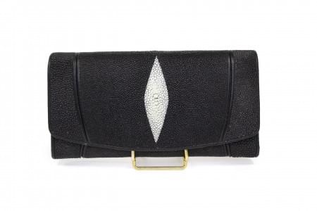 Galuchat noir centré d'un motif blanc, intérieur en tissu noir,...
