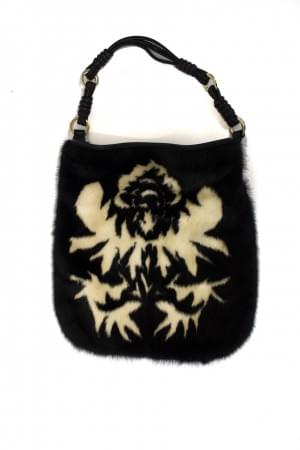 Fourrure de vison brun et crème formant un motif floral, garnitu...