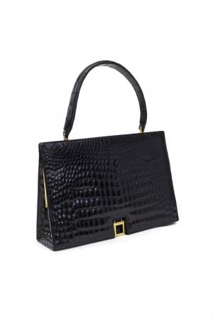 Crocodile verni noir, garniture en métal doré, 20x29 cm
