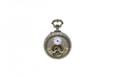 3087. Montre de poche à échappement visible de type carrousel à décor...