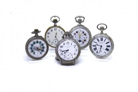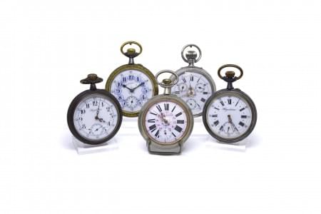 3089. Lot de cinq montres de poche dont 4 "Régulateur"