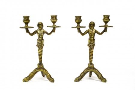 4133. Paire de bougeoirs Art déco à deux feux en corne d'abondance
