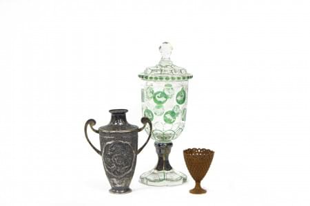 4120. Coupe sur pied couverte à décor de poissons, soliflore à décor d...
