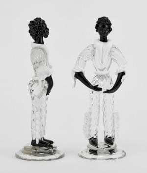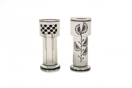 Paire de bougeoirs tourbillon, verre, atelier Schlaepfer, D 18 c...