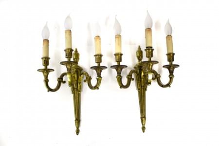 4171. Paire d'appliques à trois lumières de style Louis XVI