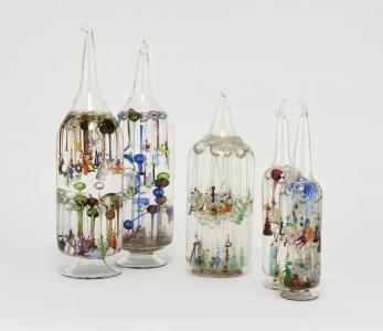 Verre, argent et bois naturel, H 5,5 à 20 cm