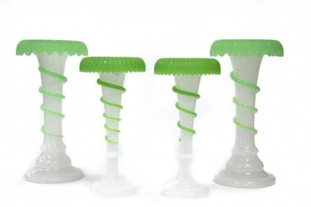 Ensemble de trois bougeoirs tourbillon, verre, atelier Schlaepfe...