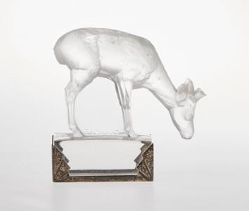 4186. Presse-papier Daim, signée R. Lalique, monture Mellerio