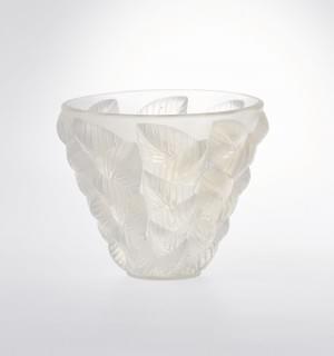 Verre blanc moulé-pressé patiné opalescent, D 15 cm. Modèle créé...