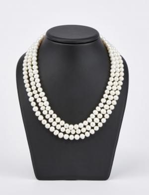 3282. Collier de trois rangs de perles terminé par un fermoir serti d'...