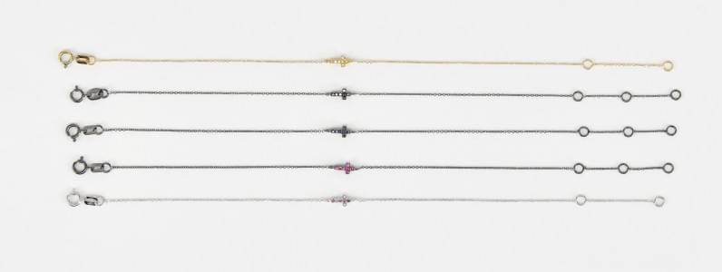 3218. Lot de cinq petits bracelets retenant chacun une croix pavée de...