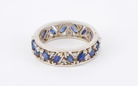 3221. Anneau rivière serti de saphirs taille marquise rehaussés de dia...