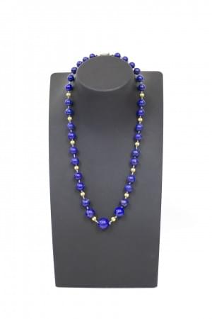 3222. Lot de deux colliers de perles de lapis-lazuli, l'un ponctué de...