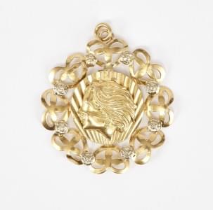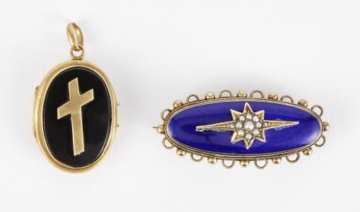 3253. Lot d'une broche et d'un pendentif porte-photo, la première émai...