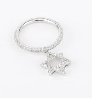 3243. Anneau pavé de diamants retenant une étoile de David mobile pavé...