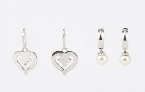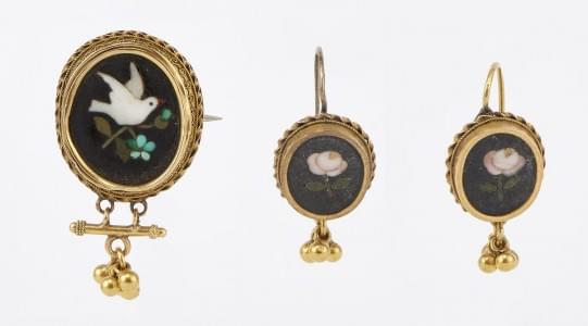 3247. Lot de deux pendants d'oreilles et d'une broche retenant des mot...